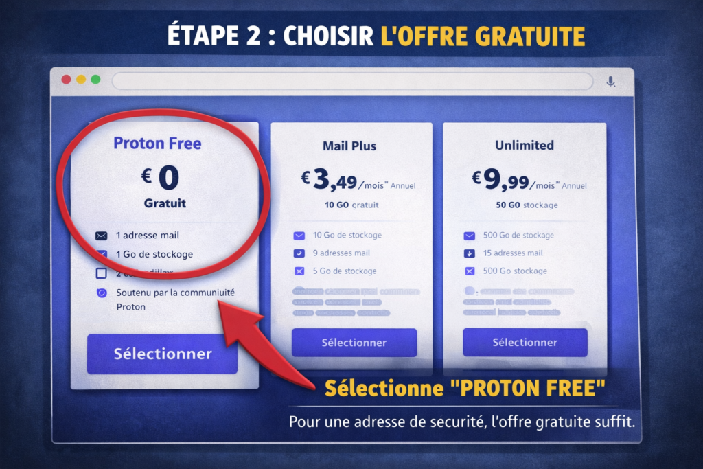 Étape 2 – Choisir l’offre gratuite (largement suffisante)