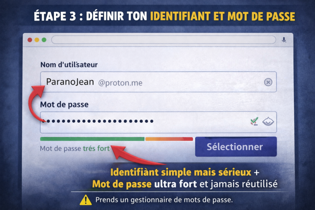 Étape 3 – Choisir ton identifiant et surtout ton mot de passe
