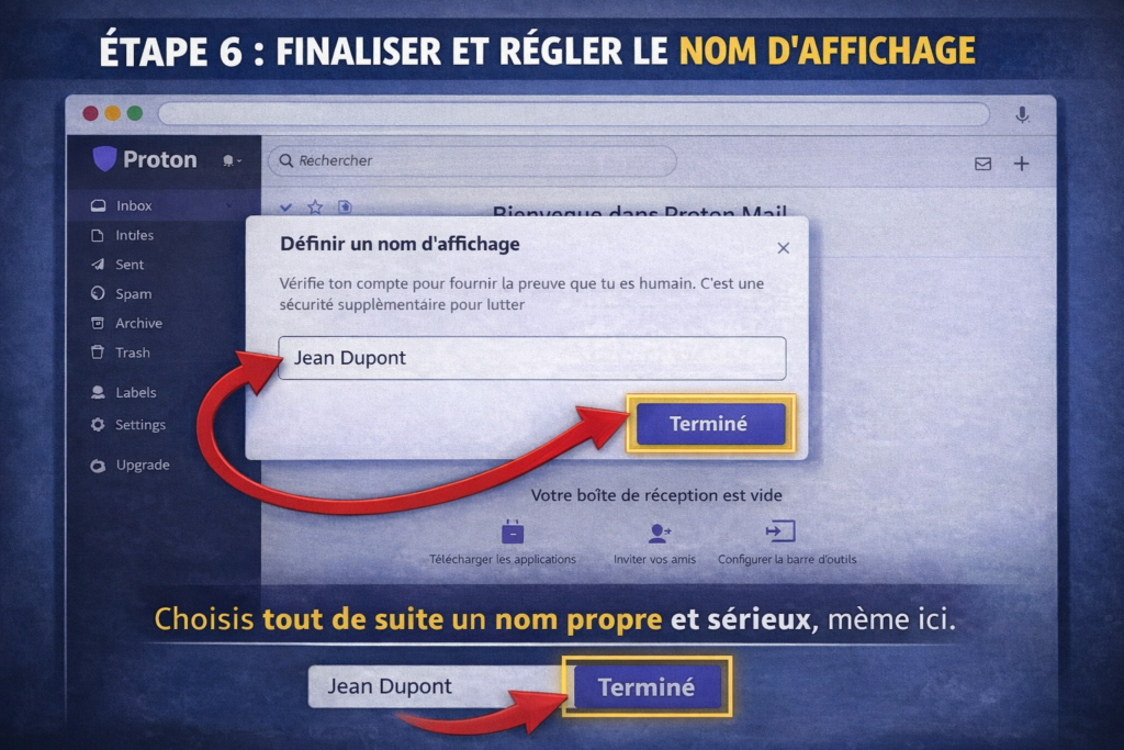 Étape 6 – Finaliser et régler ton nom d’affichage